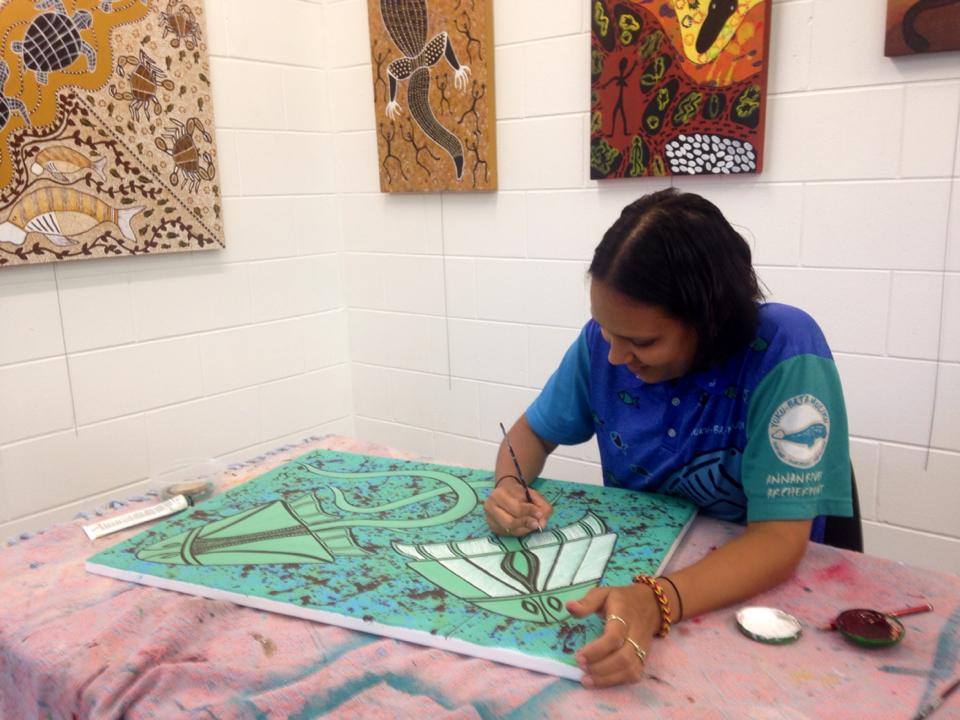 To ease some of these problems and to promote the wellbeing of our staff we encouraged rangers to share their stories through painting, making tools, drawing or writing stories. Experienced artists in our community supported the program by sharing their skills and techniques with the rangers.